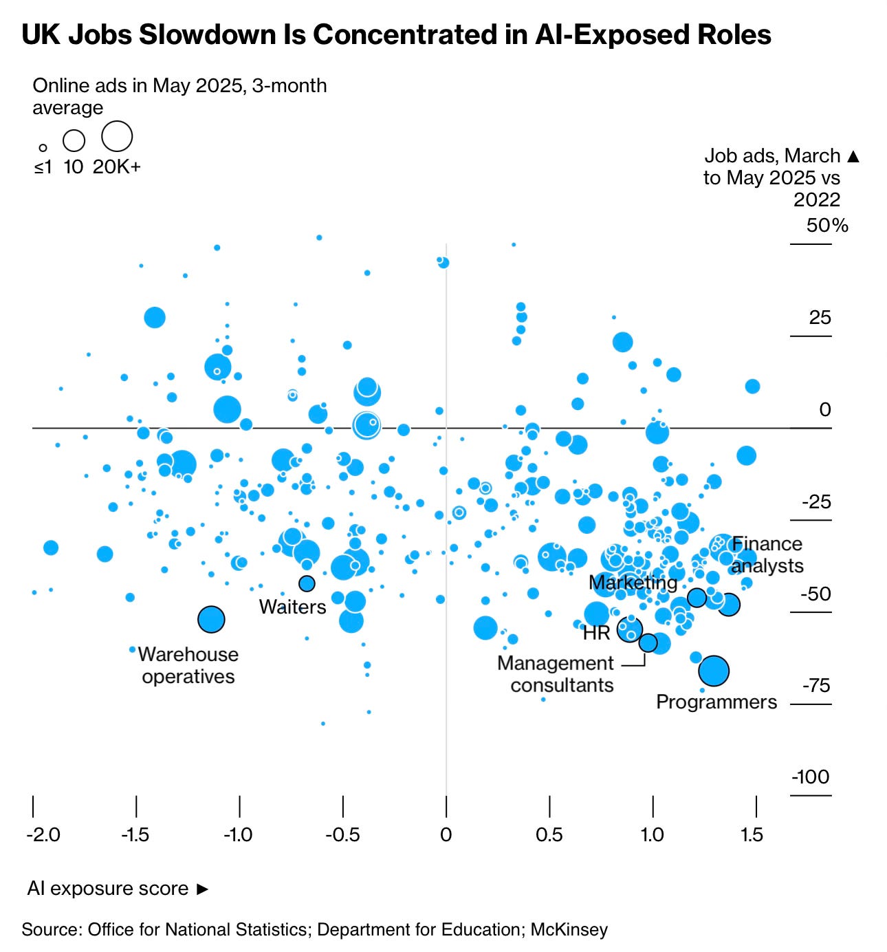 We're witnessing a catastrophic false economy being created right before our eyes. Companies are freezing graduate hiring while waiting for AI productivity gains that haven't materialised yet. Nevertheless, half of UK firms plan to shift spending from staff to AI systems. This is happening, it is very real, and quite frankly, it's frightening.