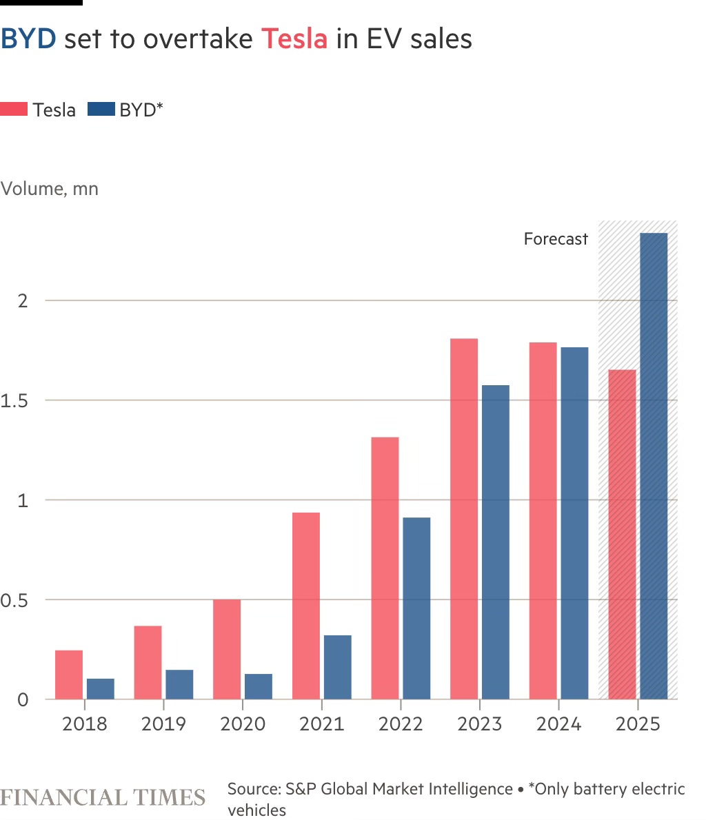 CHART 1 • BYD set to overtake Tesla in EV sales