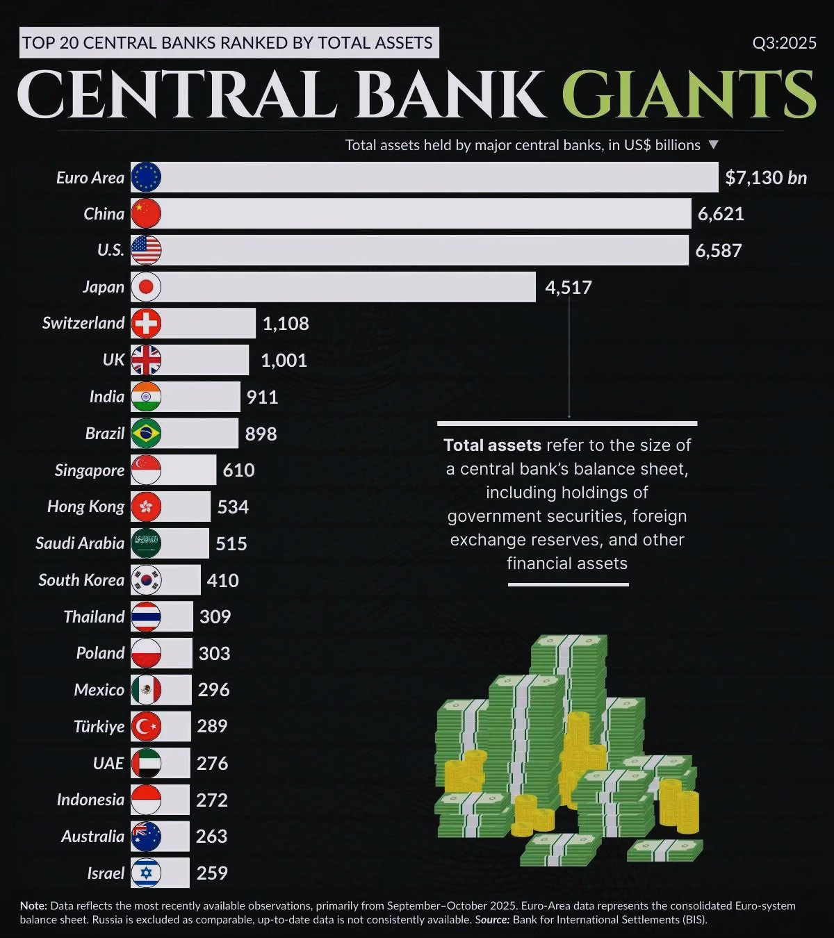 This matters because size changes behaviour. When central banks hold large portions of government bond markets, their actions influence yields, liquidity and risk appetite even when policy rates are unchanged. Balance sheets become an active policy channel rather than a background detail.