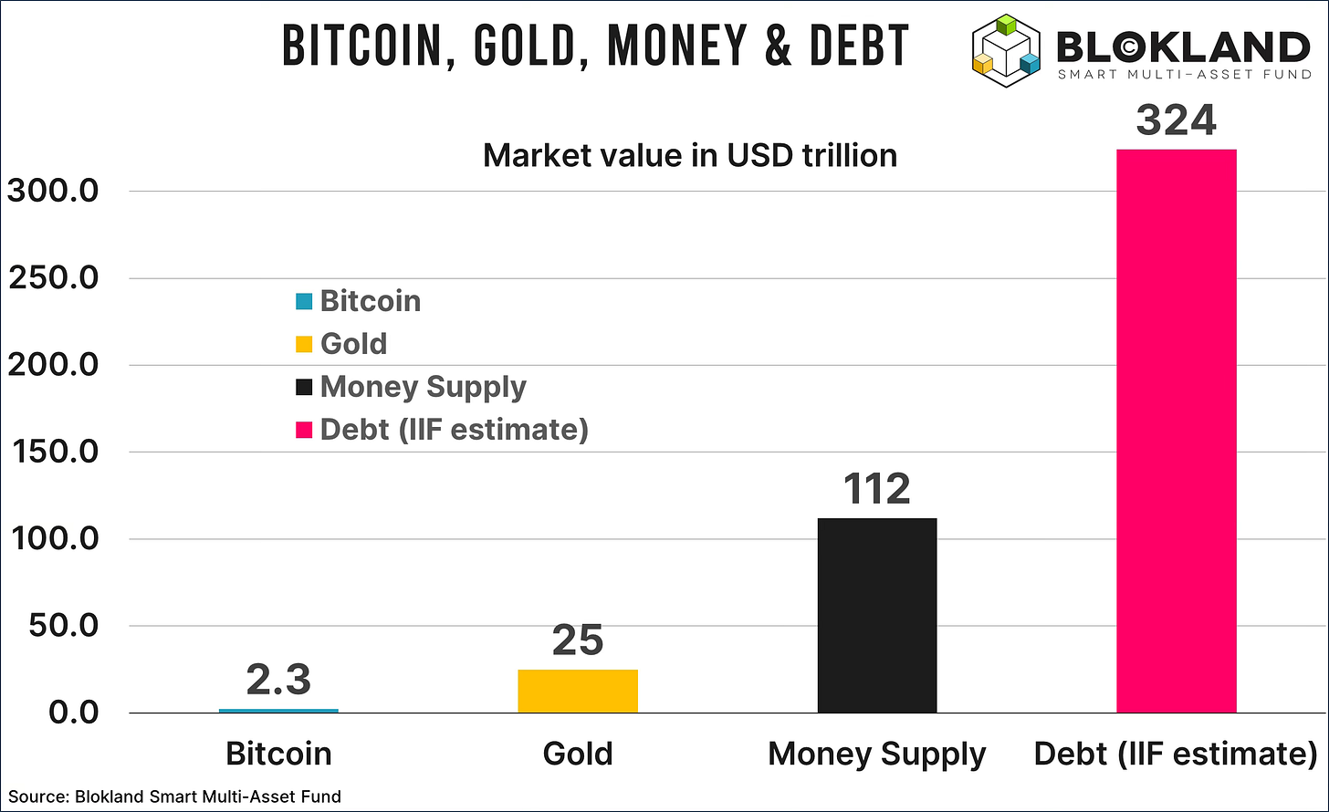 CHART 1 • Bitcoin vs Gold vs Money vs Debt Market Values