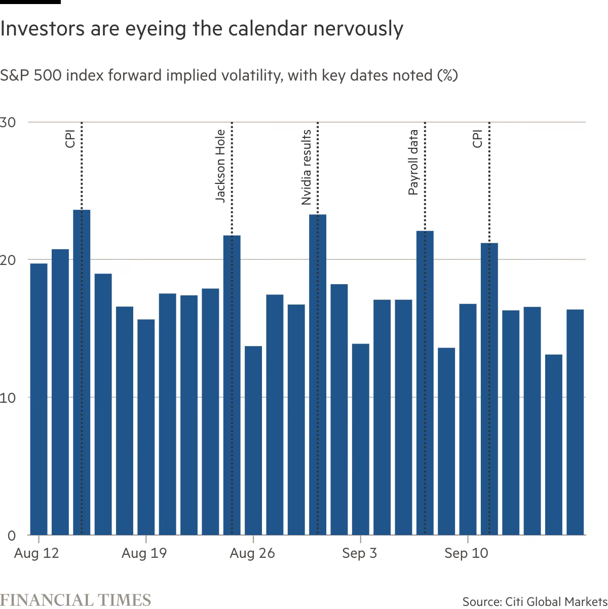 The market is focused on events like the CPI data release, the Jackson Hole meeting, NVIDIA's earnings results and payroll data. A bad reading from any of these could have a significant effect on market volatility.