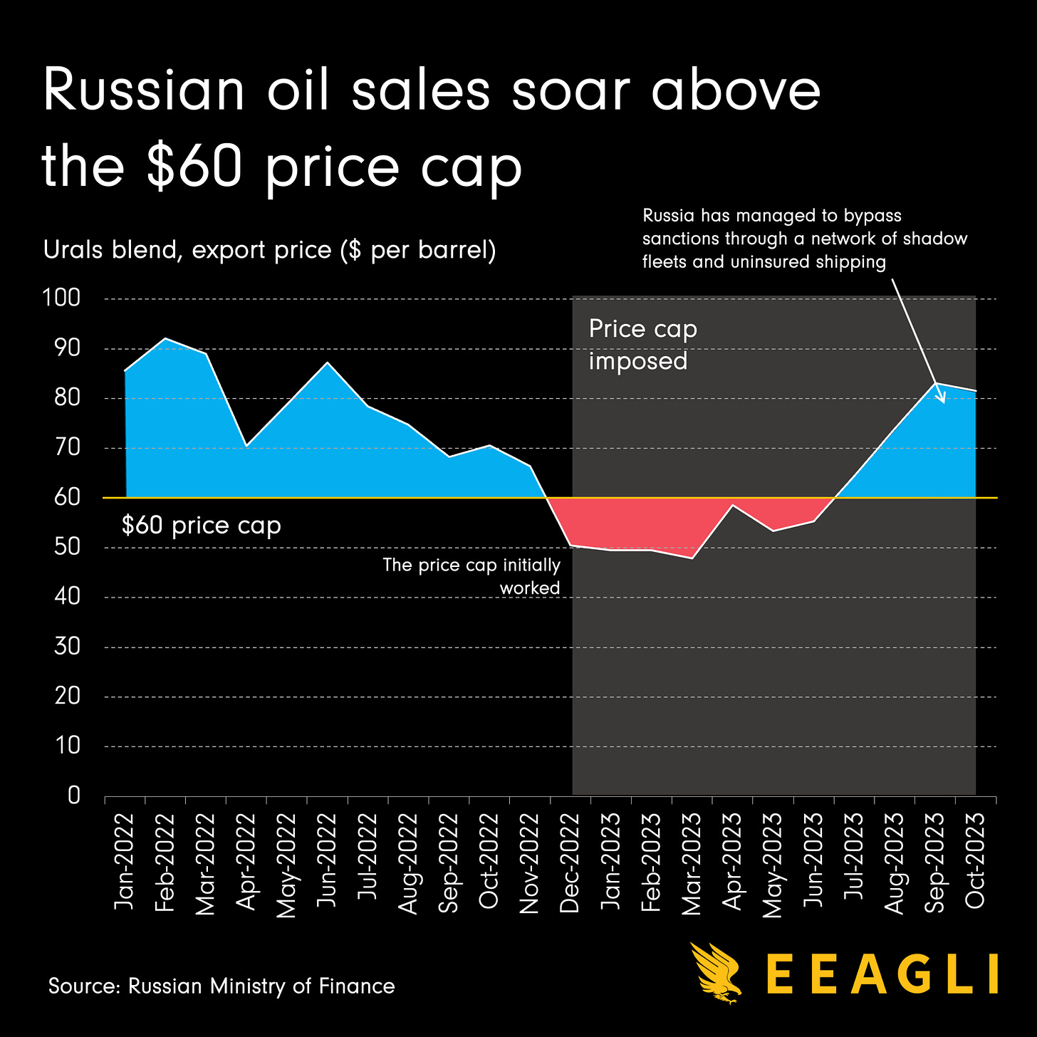 The price cap on Russian oil, spearheaded by the US and established at $60 per barrel, is proving ineffective. Russian oil is being traded at prices exceeding this threshold, often surpassing $80 per barrel.