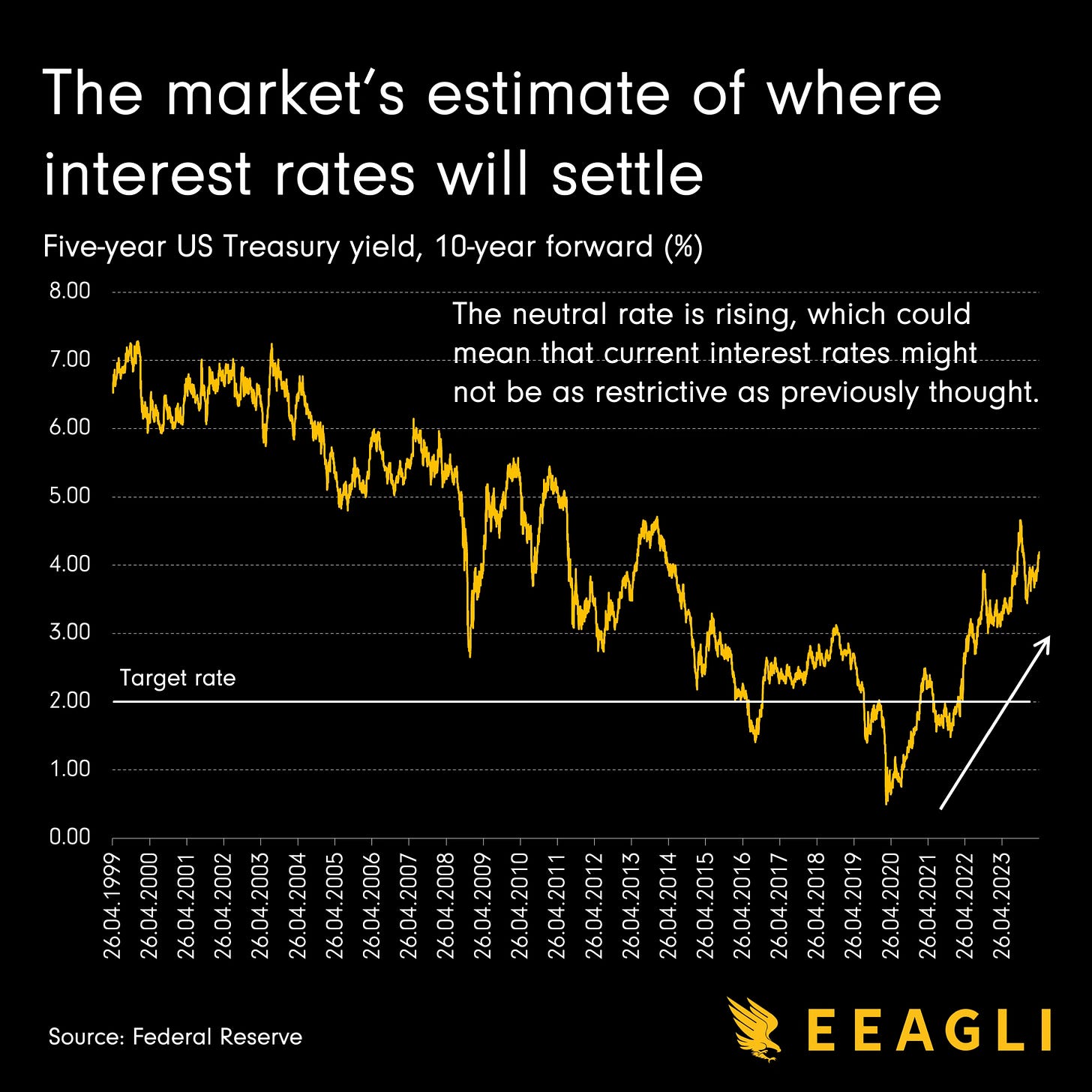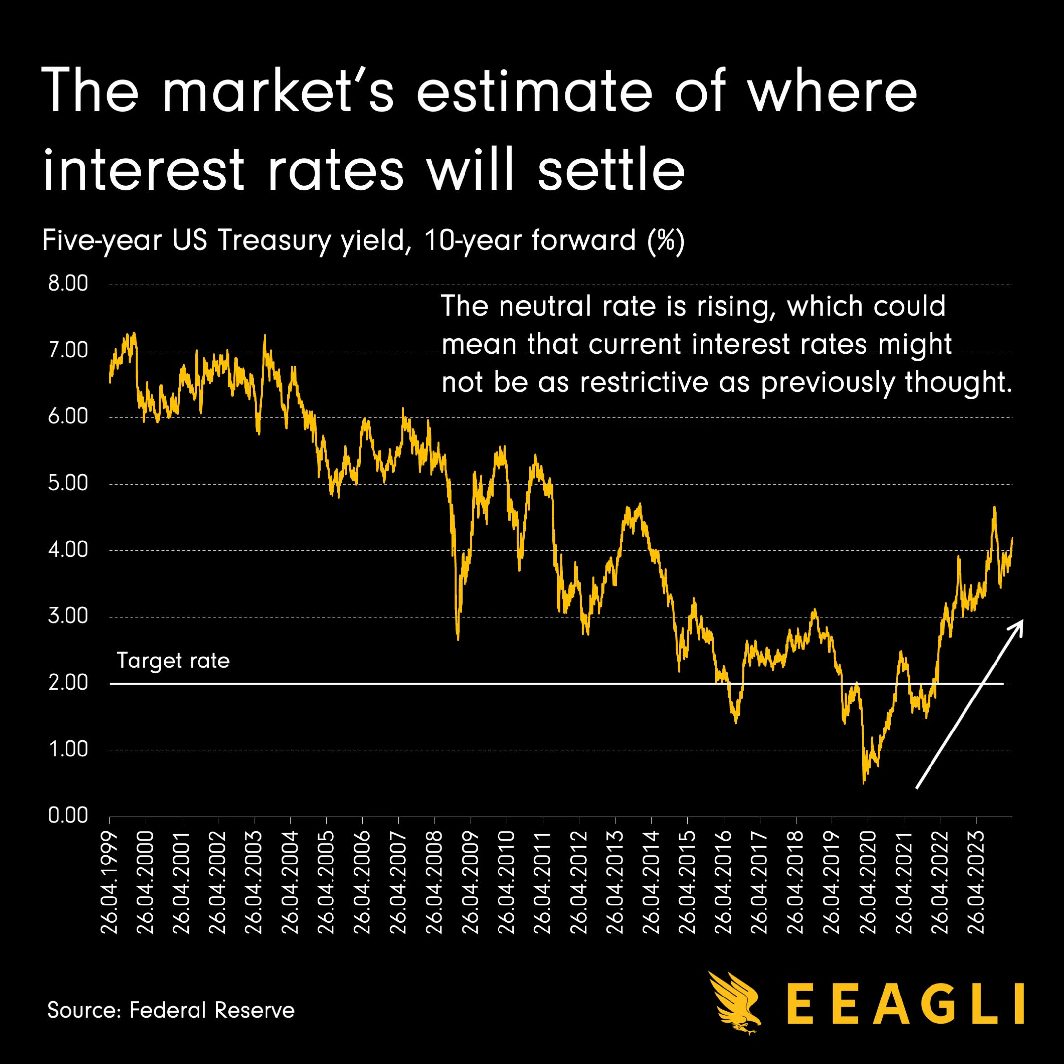 Traditionally, this rate has been thought to be quite low, especially following the 2008 financial crisis, but there are signs that it might be increasing. The reasons for a potential rise in the neutral rate include higher government deficits and increased investments in areas like green energy and artificial intelligence.