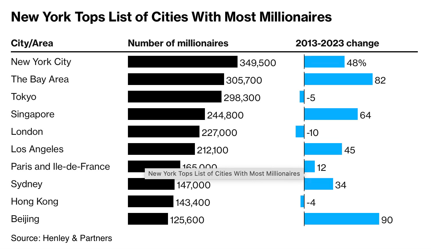 Despite concerns of a potential exodus of the wealthy to other states, a recent report by Henley & Partners reveals that New York City boasts more than $3 trillion in combined wealth, with nearly 350,000 millionaires residing within its borders.