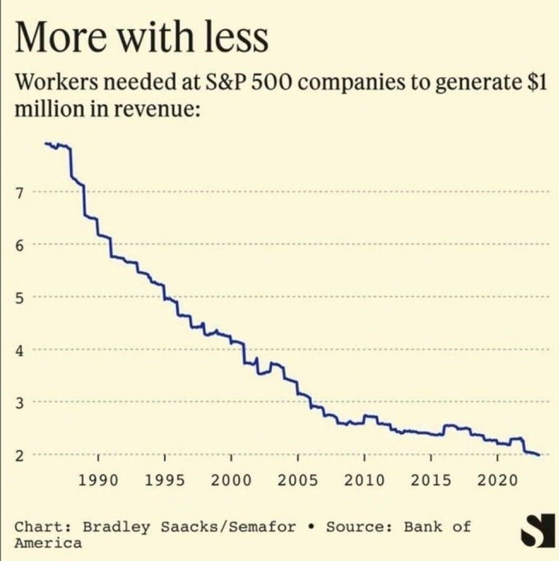The S&P 500 has become 70 percent less worker-intensive than in the 1980s due to technology innovations, reducing the impact of wage swings on earnings.