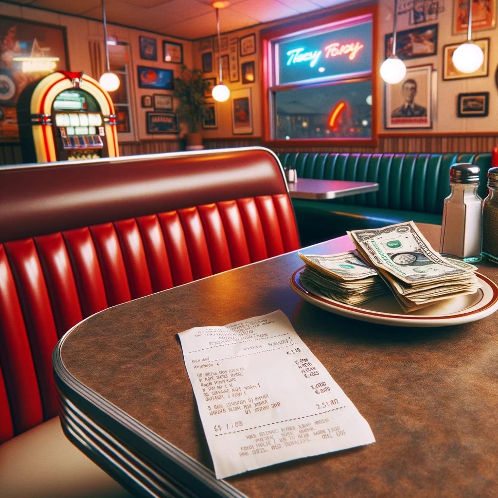 It means you don’t need to pay a tip. I’m okay with that here in Europe. It makes life simpler and helps the staff. But I had a funny incident in a diner in New York.