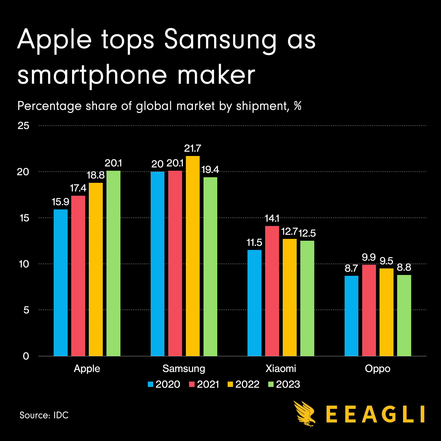 Apple now tops Samsung as the world biggest smartphone manufacturer