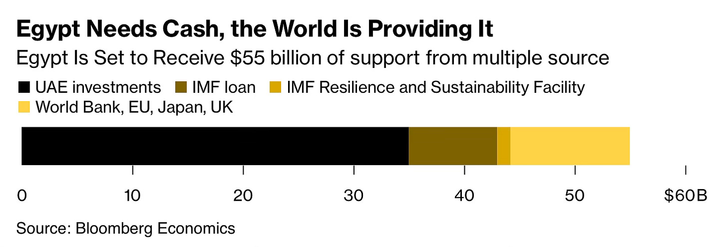 Abu Dhabi's investment exceeded usual UAE engagements. It could have been smaller if the goal was to stabilise Egypt's economy. The $24 billion for Ras El-Hekma's rights and $11 billion for other projects equalled Egypt’s total foreign reserves.