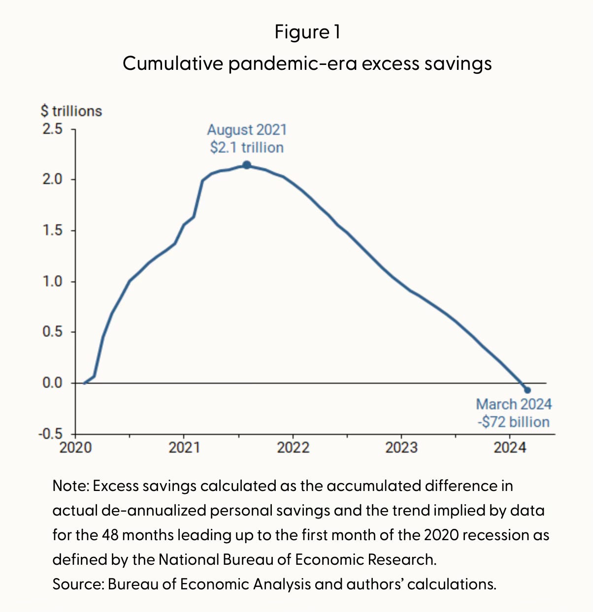 This chart has been doing the rounds on social media, especially last week. What’s the story here. It’s quite simple. As of March 2024, the US economy has now seen the complete depletion of the excess savings that were accumulated during the pandemic period.