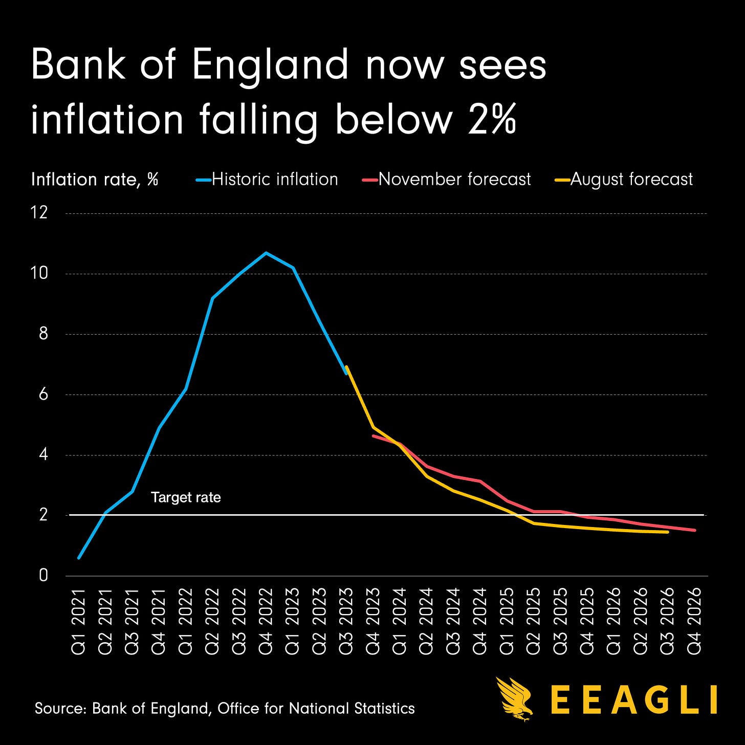 Now, this is interesting. The Bank of England expects to see headline inflation fall below its 2% target by early 2025. This comes after the Bank of England made an interest rate announcement last week. What happened? Nothing! Rates remain on hold.