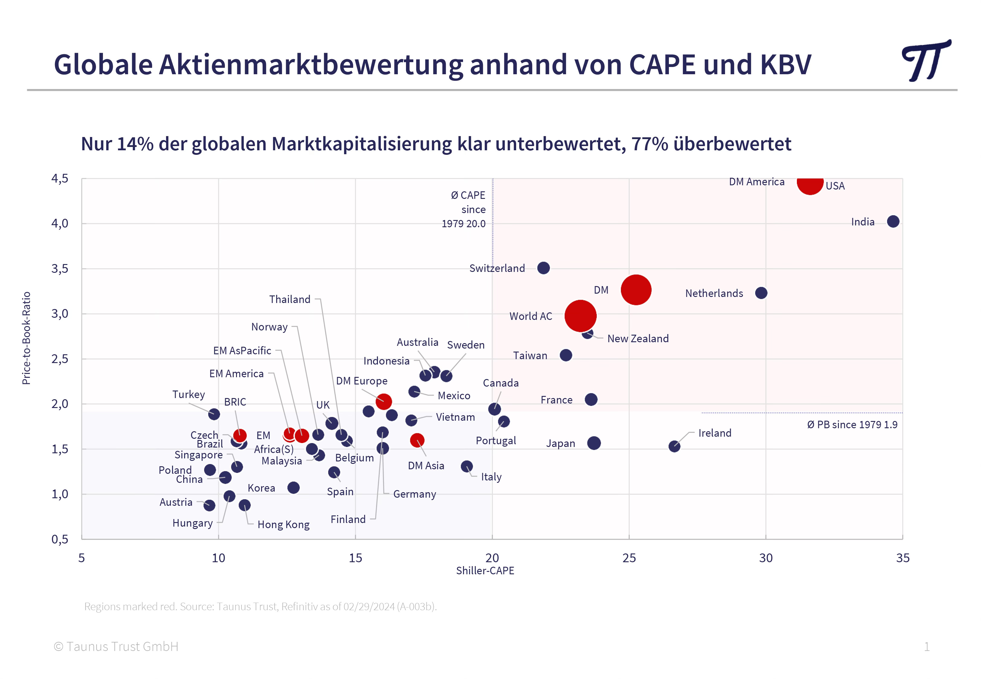 According to Norbert Keimling's analysis, stock markets have a typical average value based on two metrics: the Shiller CAPE and the price-to-book (P/B) ratio.