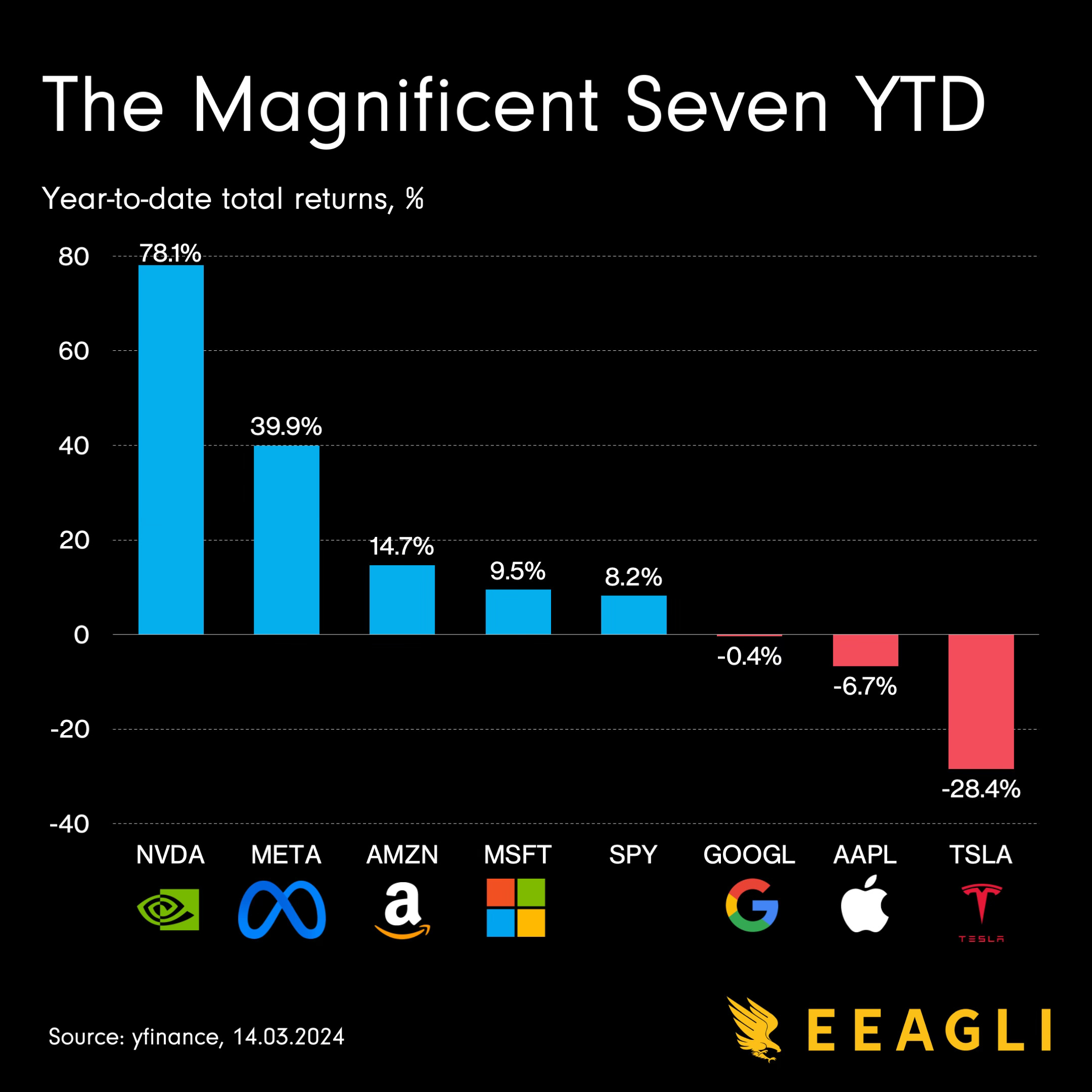 In the heart of the S&P 500, the Magnificent Seven – NVIDIA, Microsoft, Apple, Meta, Alphabet, Tesla and Amazon – convened under the moonlight, their circuits and algorithms buzzing with the potential to reshape the world.