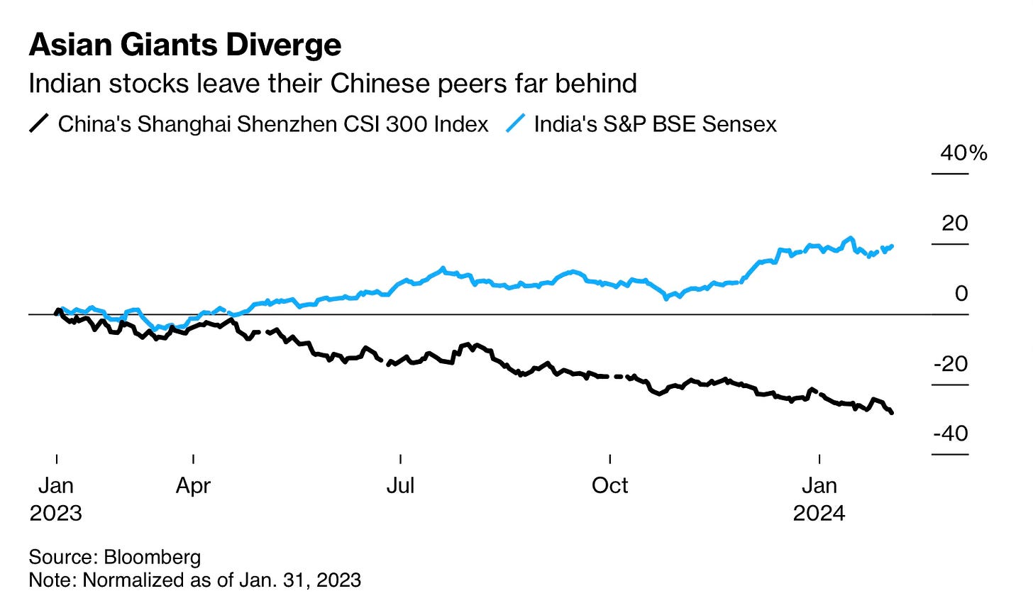 This shift has sparked a gold rush, with hedge funds and investors repositioning their portfolios to India, driven by its rapid economic growth, expansive infrastructure development and geopolitical considerations. As China grapples with economic challenges and global tensions, India's rise as a significant player on the world stage is gaining momentum.