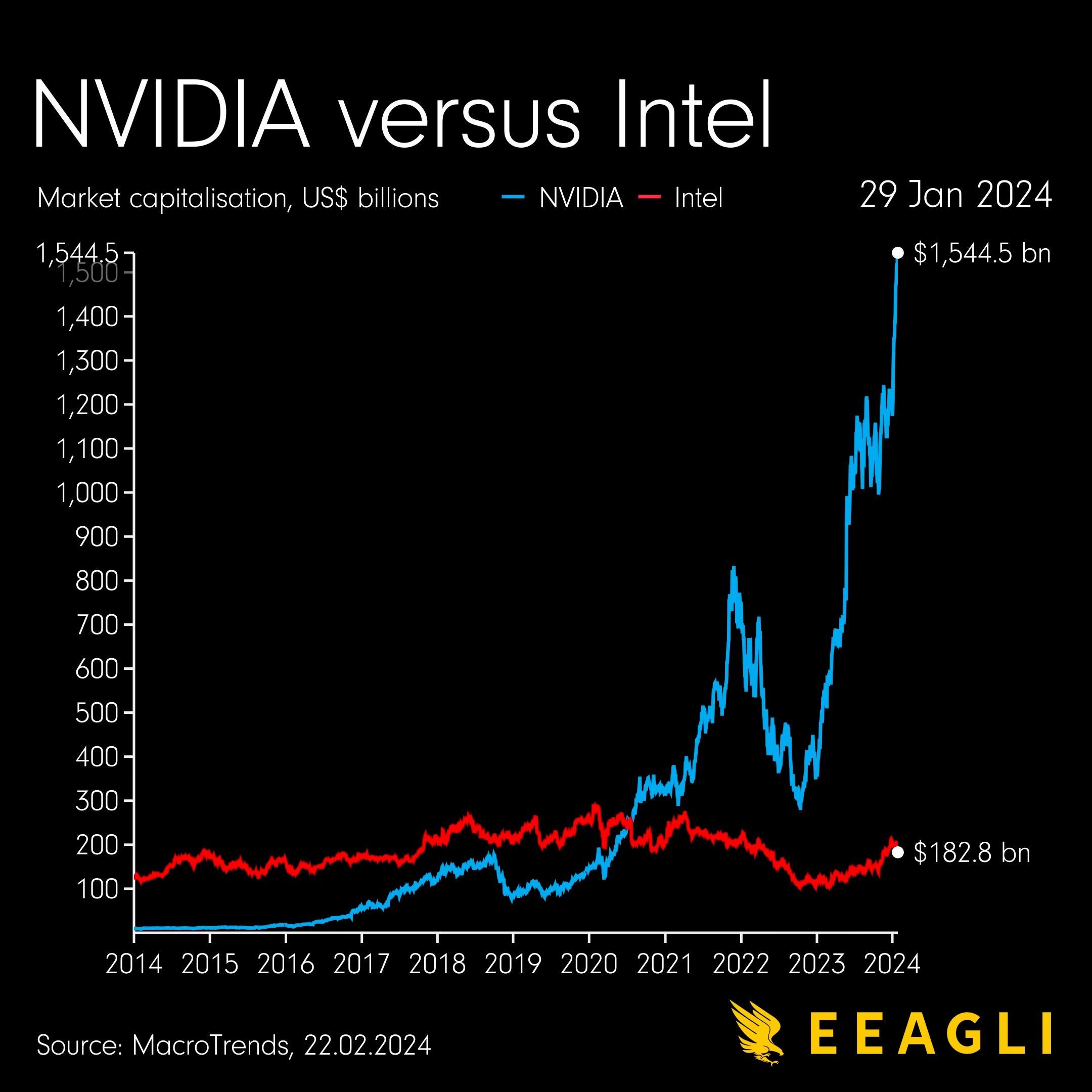 NVIDIA's market capitalisation has vastly outstripped that of Intel. An odd comparison? Not to me! Growing up, both brands featured prominently during my teenage years: Intel with its lineup of Pentium processors and NVIDIA with its graphics cards.