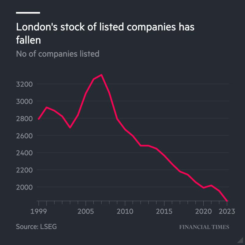 Britain's brand took a massive bashing from Brexit. As you can see, London's stock of listed companies is on the decline. The pressure is on for the Capital Markets Industry Taskforce, who need to revitalise the UK's languishing capital markets thanks to Brexit.
