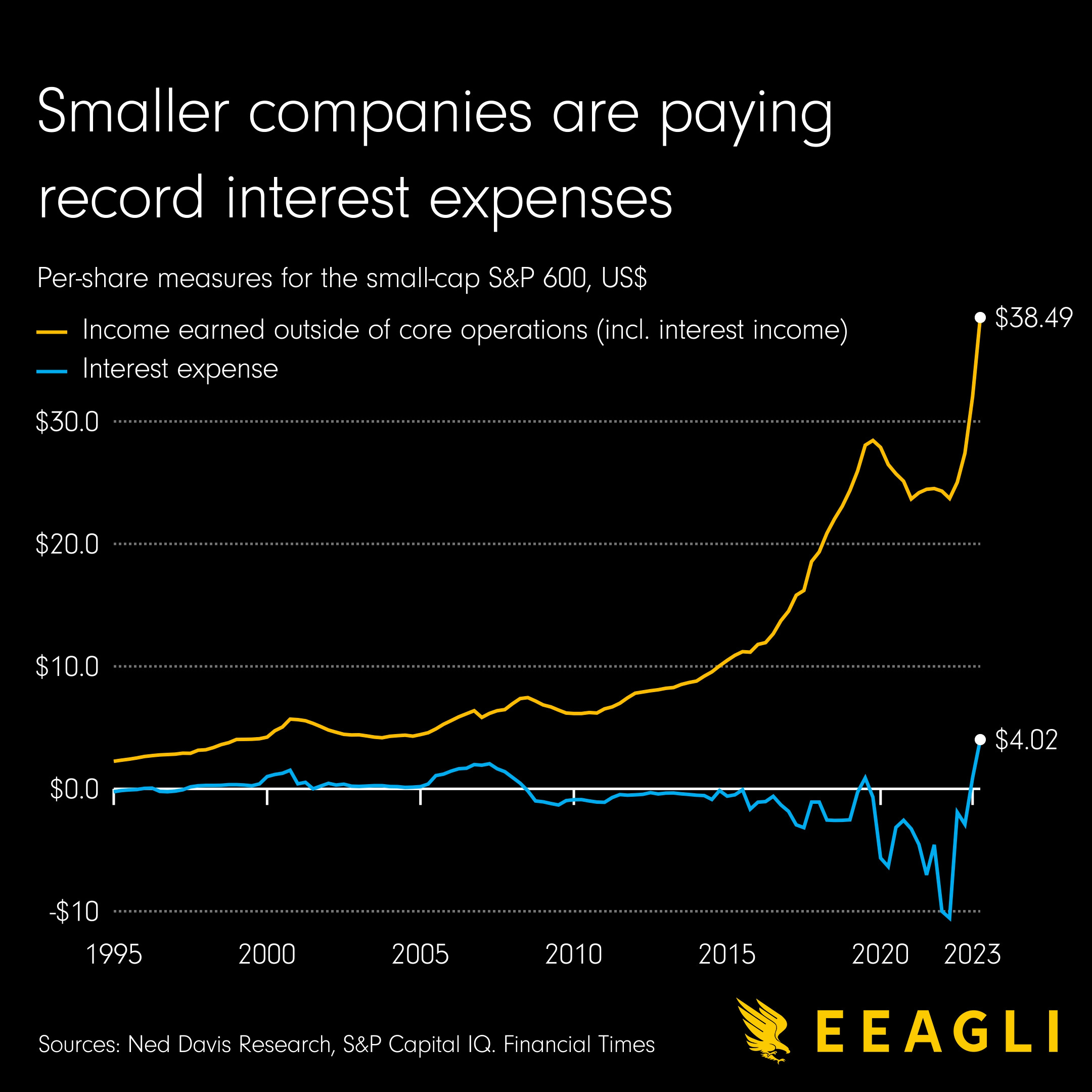 It also demonstrates the unequal impact that rising interest rates have on the US economy. Smaller companies feel it more, which are directly linked to the health of the economy.