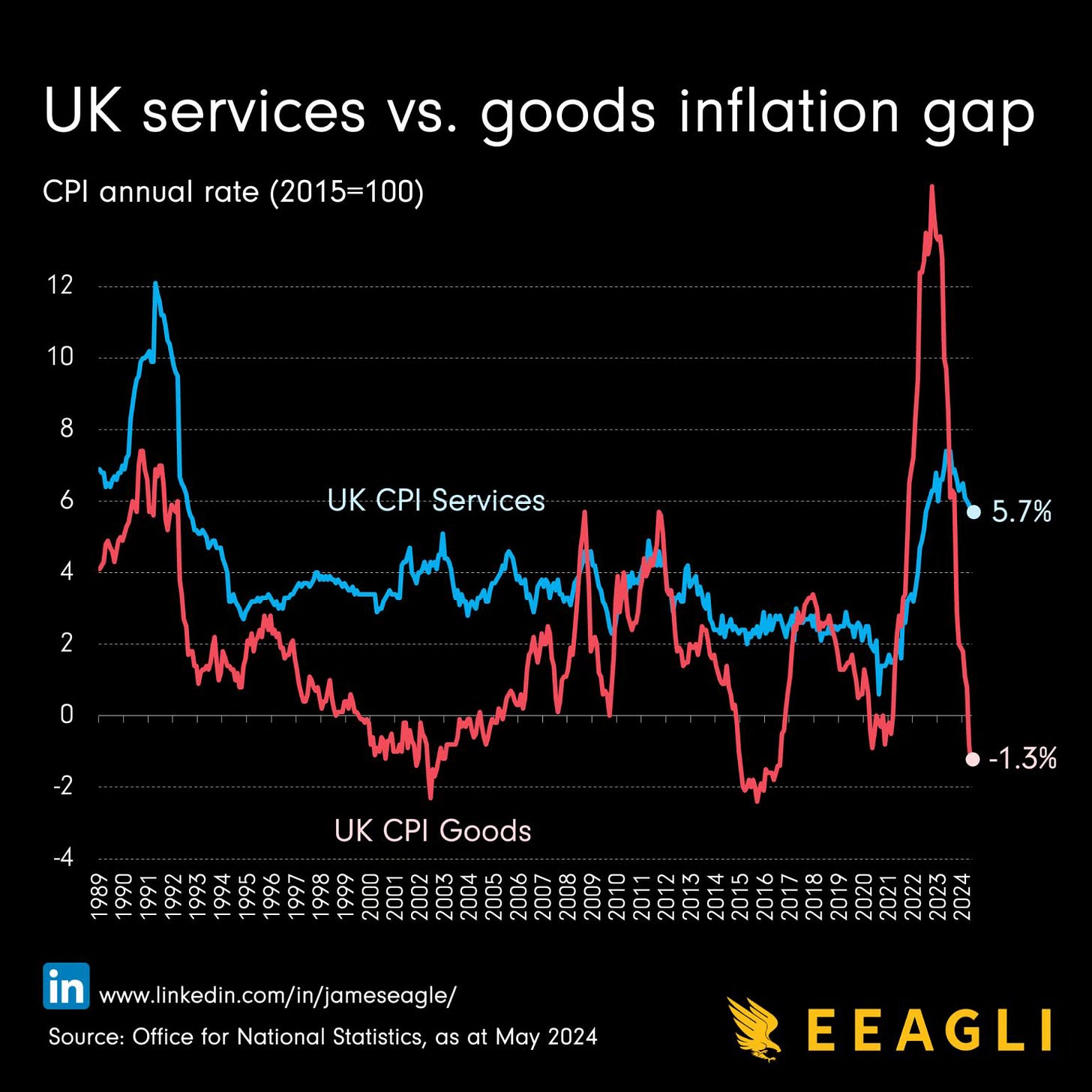 There's a sharp divergence between goods and services inflation, the widest since 1989. This is the elephant in the room that Sunak seems to have ignored.