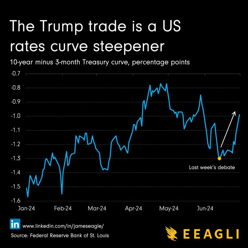 Heard of the Trump trade? It's the market's response to a Trump victory. And the possibility of this happening is being priced in more and more as Biden’s performance wanes in the form of a steepening yield curve.