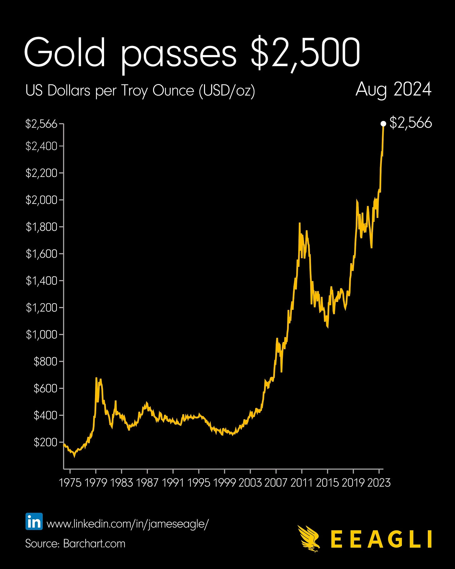 There was a lot of press coverage on this topic last week. Gold has surpassed $2,500 for the first time ever. Here are three reason why the price of gold has risen, plus a data visualisation that maps out this price rise.