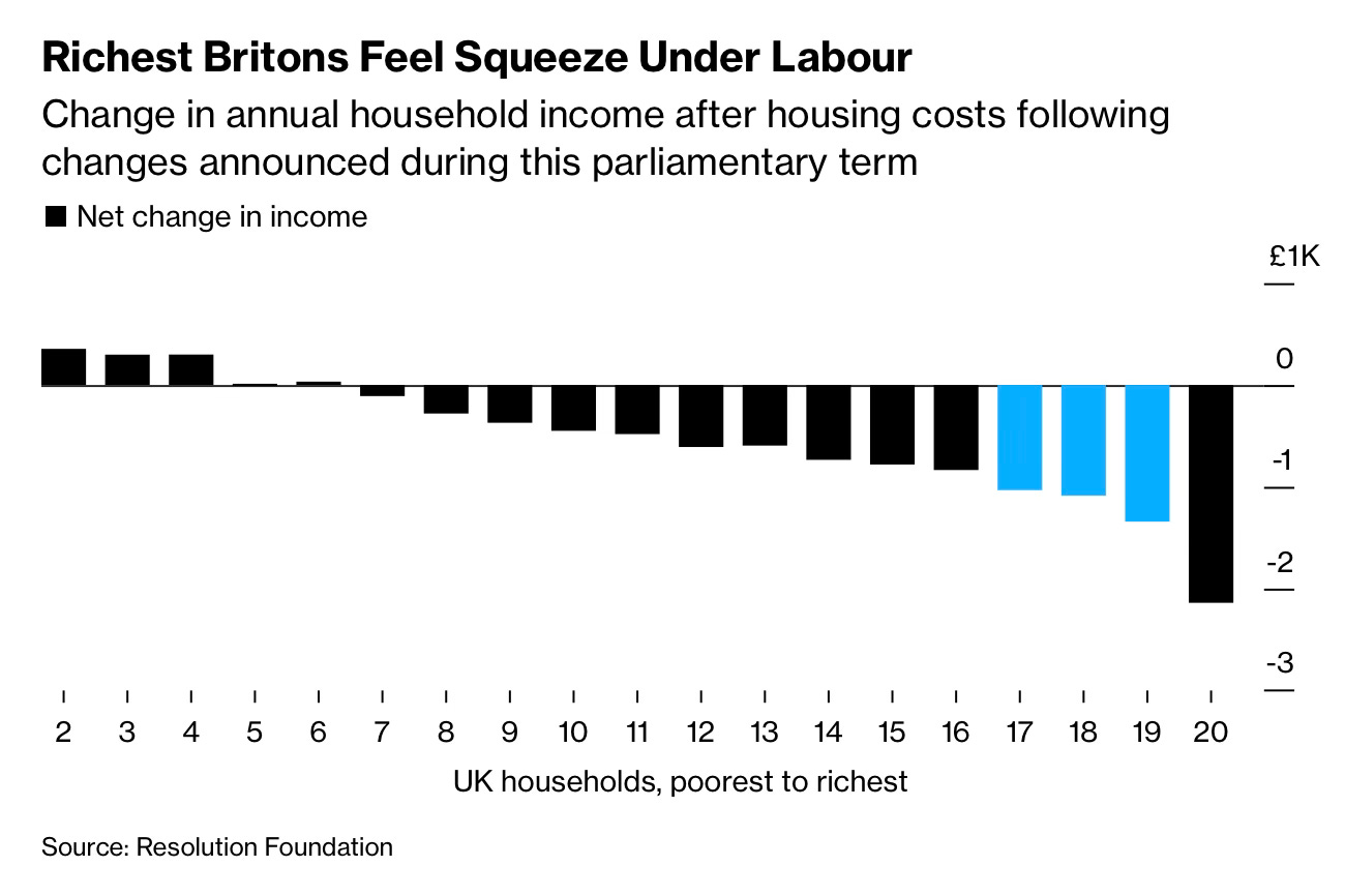The numbers hint at a broader political shift. Income redistribution is back at the centre of UK economic policy and the government wants the richest households to shoulder more of the adjustment in the early years of this term.
