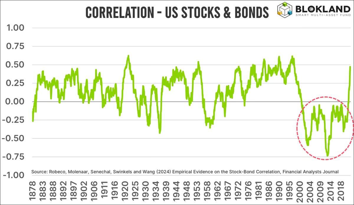 "Most investor generations are (literally) brought up with the idea that the equity-bond correlation must be negative. But this is entirely flawed. For most of history, the correlation has been positive."