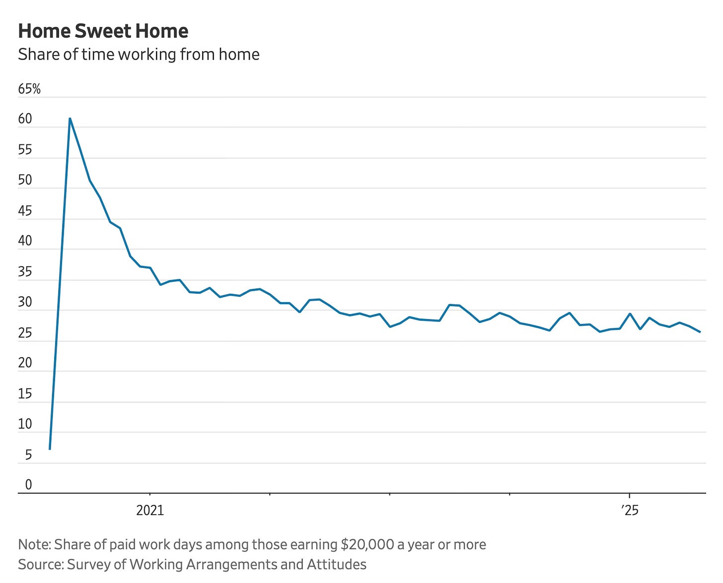The data confirms that hybrid working has become our new reality. Remote work now accounts for 30% of paid workdays, seven times pre-2019 levels, and this shift appears permanent. The hybrid model succeeds because it solves both problems: eliminating soul-destroying commutes while preserving face-to-face collaboration when it matters most.