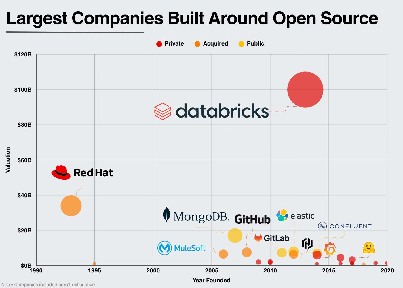 The irony isn't lost on me. I remember the scepticism when Red Hat went public in 1999. How could you make money giving away your product? Yet here we are, with open source forming the backbone of nearly every major tech stack. What fascinates me isn't just the valuations, it's the acceleration. Companies founded after 2010 are worth multiples of firms that spent decades building the category.