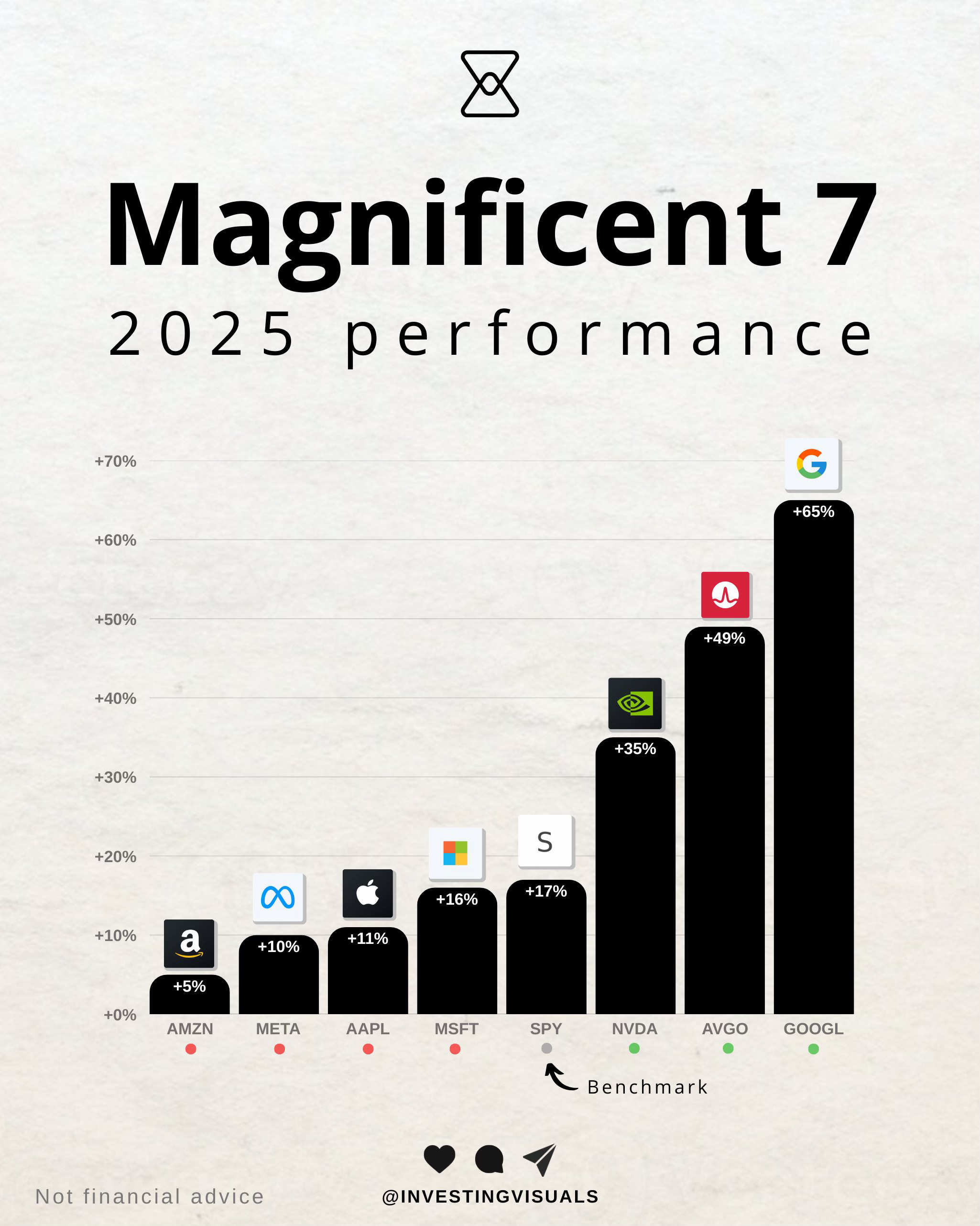 The Magnificent 7 are often talked about as a single trade. This chart shows how misleading that has become in 2025.