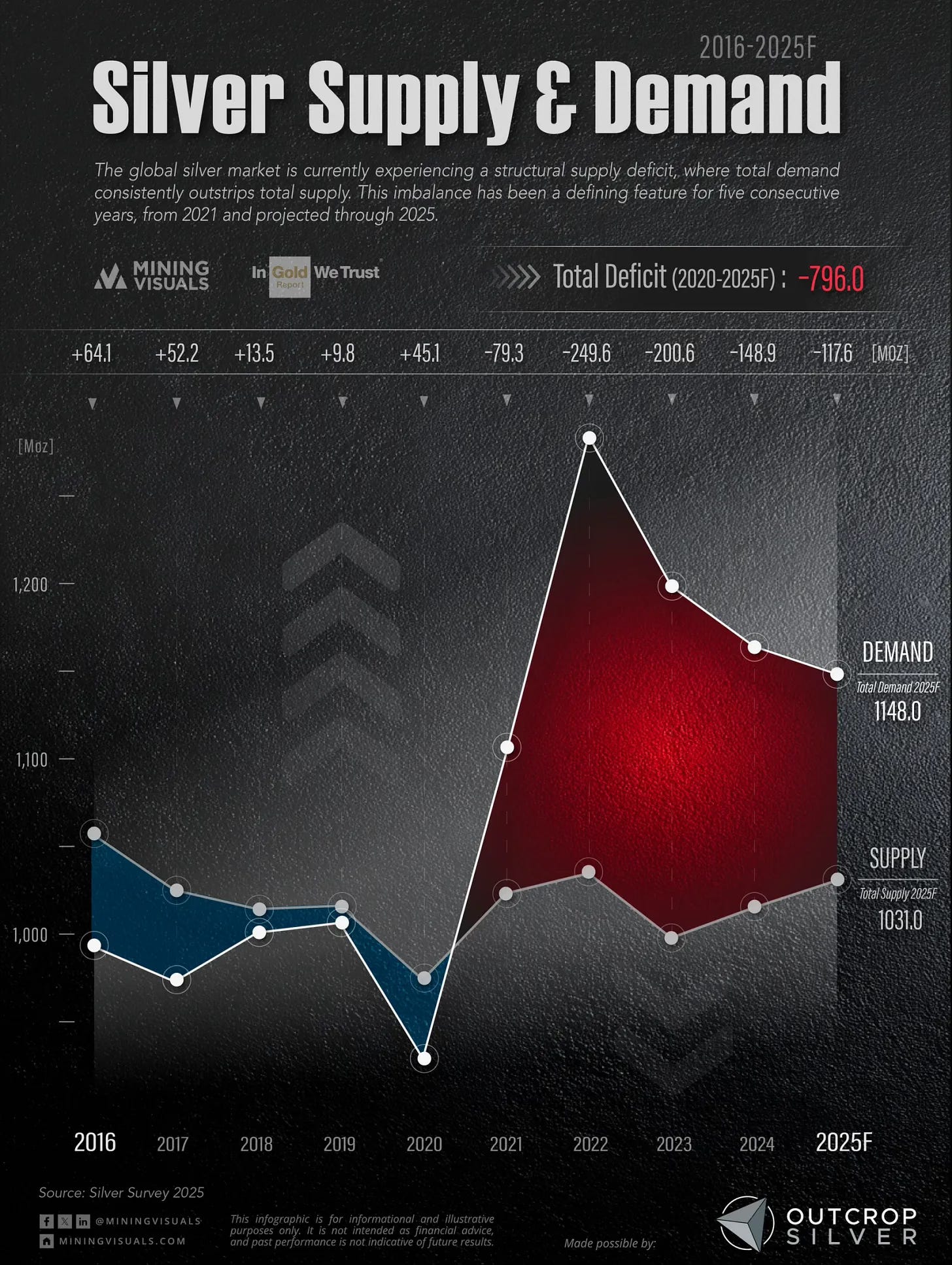 This is not about short-term disruptions. It is about the cumulative effect of underinvestment, declining ore grades, longer permitting cycles and rising political risk. And you can see this now in the silver market, which is why silver prices have been driven to record highs. Mining timelines that once took years now stretch into decades. Capital expenditure has lagged in real terms. Recycling helps, but it does not scale fast enough to compensate.