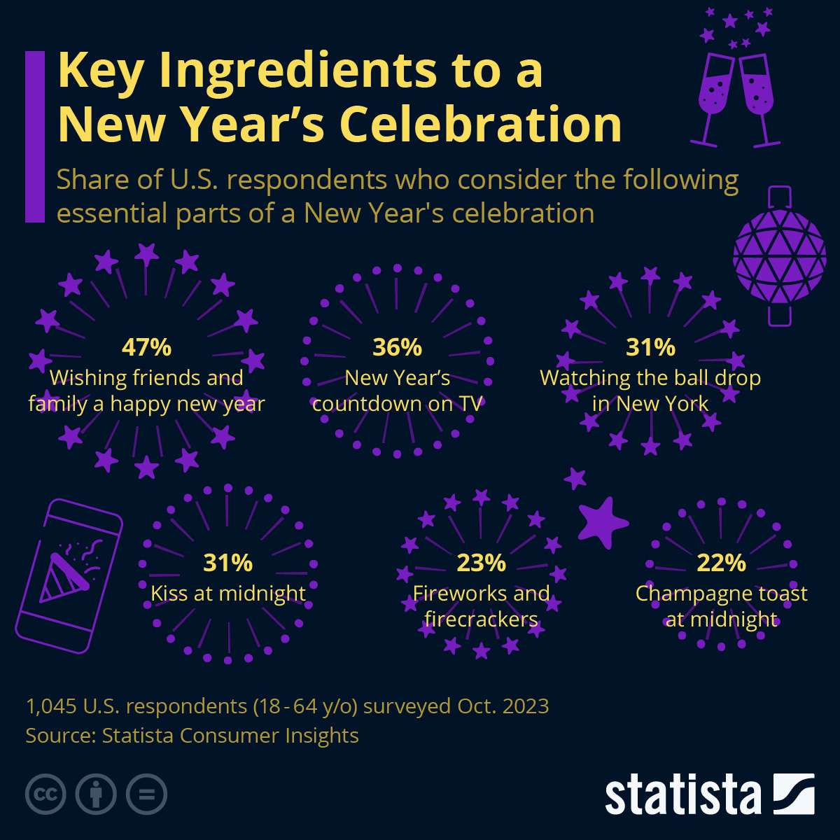 This chart matters because it strips away the noise around how people actually mark the new year. For all the spectacle, most celebrations are far simpler and more personal than the marketing suggests.