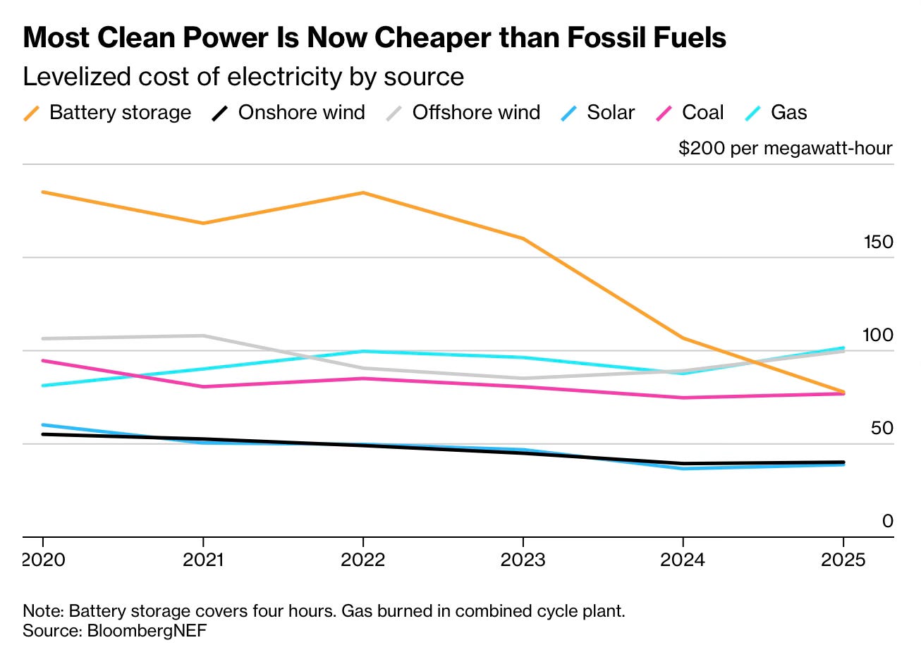 For $10 a month, or $100 a year, you support a simple mission: spread great data visualisation wherever it comes from. You help fund the work of finding, sourcing and explaining the charts that deserve a wider audience. And you back a publication built on generosity, transparency and the belief that better understanding makes a better world.CHART 1 • Why clean power is winning on cost